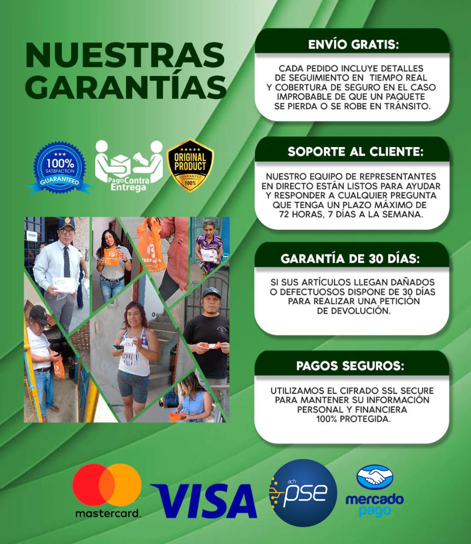 Nosotros ofrecemos 60 días de garantía en todos nuestros productos por problemas de fábrica.